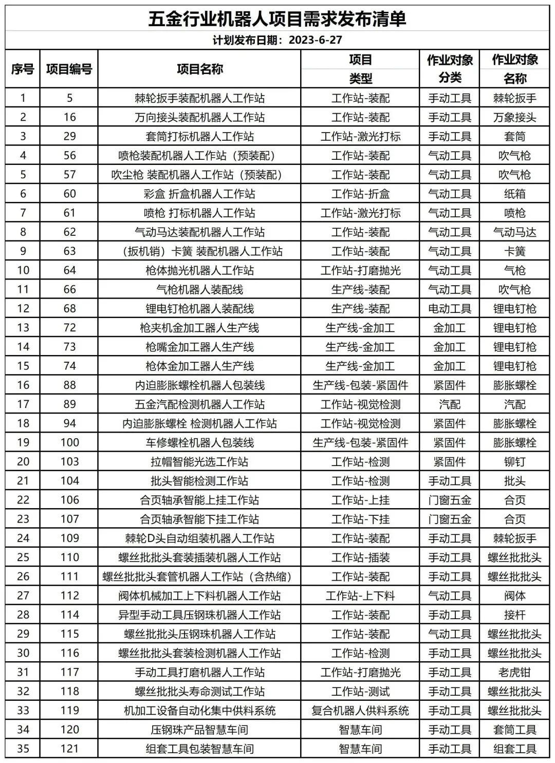 ▍五金行业机器人项目需求发布清单